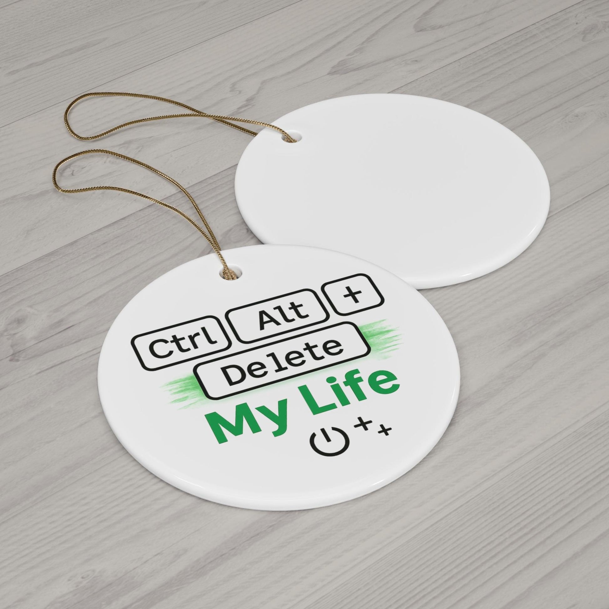 This Ctrl + Alt + Delete My Life ornament is the ultimate gift for IT pros, programmers, tech support heroes, and overworked office workers everywhere. With clean modern typography and a fresh pop of green, this ornament brings humor and relatable energy to any Christmas tree or office cubicle.