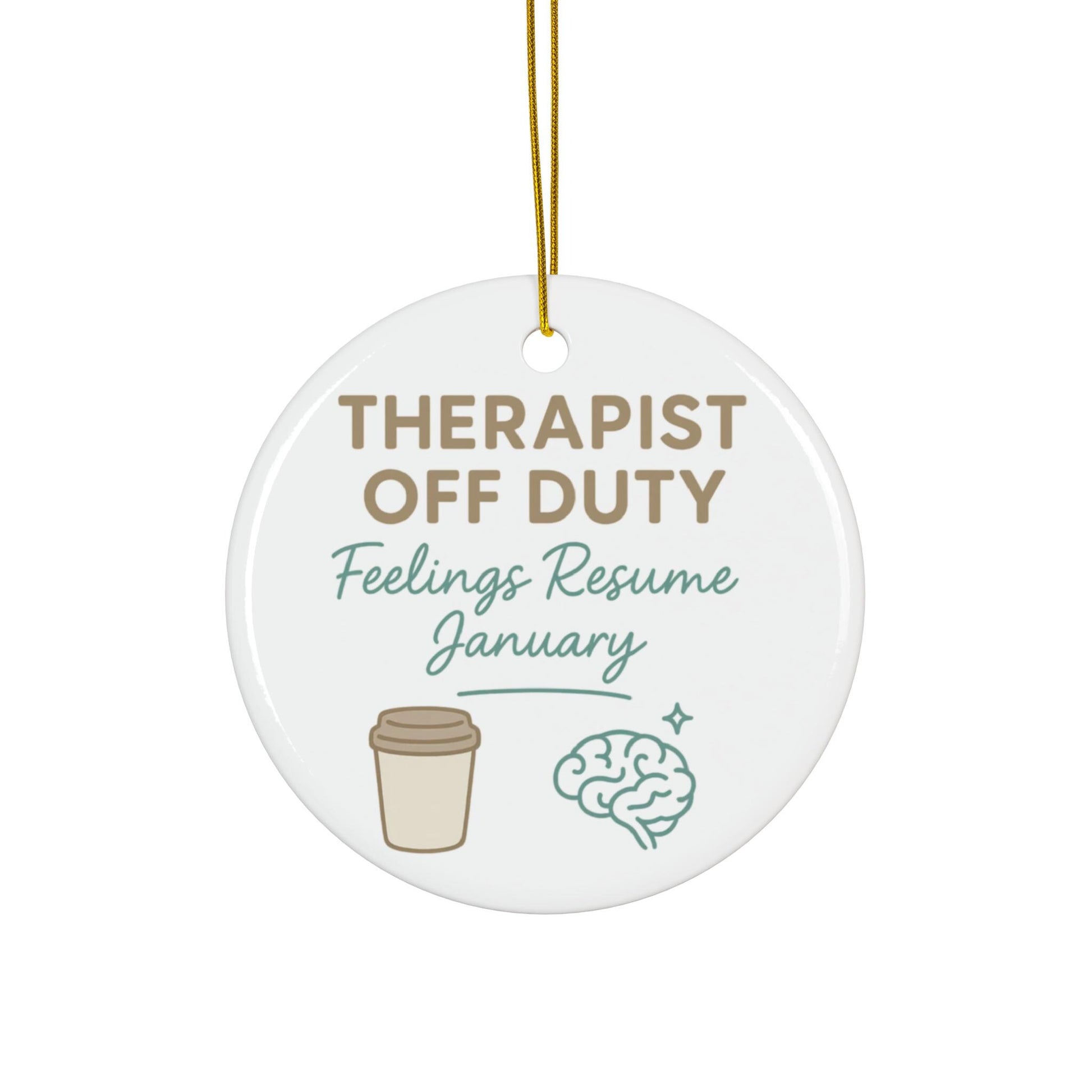 Perfect for therapists, counselors, psychologists, or anyone in the mental health field whoâs earned their holiday downtime. Designed with calming neutral tones and a cozy minimalist aesthetic, this ornament features a coffee cup and brain graphic that perfectly captures the balance between caffeine and compassion. Itâs a funny yet thoughtful way to celebrate those who spend their days helping othersâand deserve a moment to relax and recharge.Â